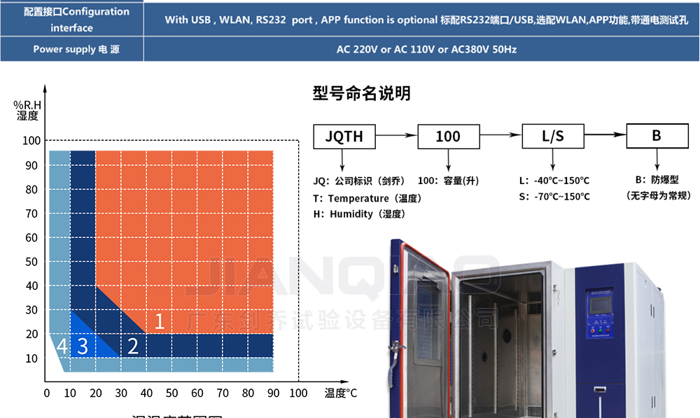 用途:廣東劍喬新款-可程式恒溫恒濕試驗箱1400L(屬于:非標定制款)主要用來測試各種材料耐熱、耐寒、耐干、耐濕的性能。本機采用智能中英俄文顯示7寸彩色觸控式屏幕畫面,操作簡單,程序編