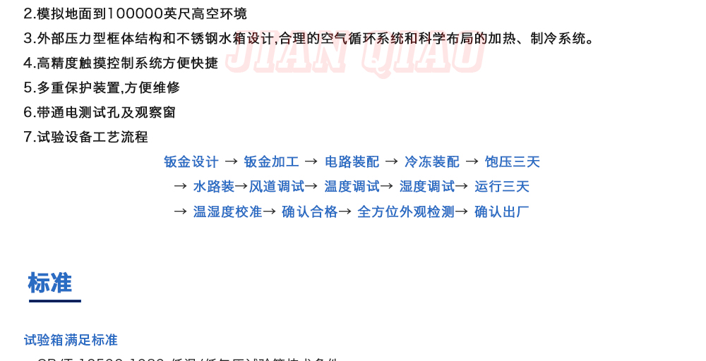 用途:高空低氣壓試驗箱主要用于試驗工件在低氣壓、高溫低溫、凝露、結霜單項或同時作用下的環境適應性與可靠性試驗,并或同時對試件通電進行電氣性能參數的測量。高空低氣壓試驗箱