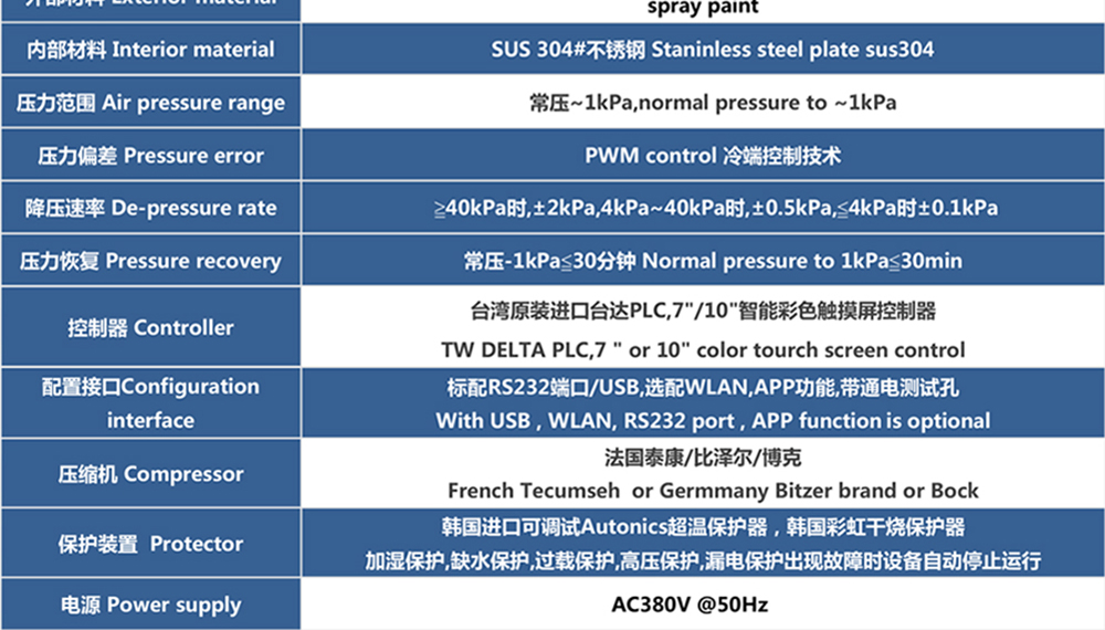 • 新款高低溫低氣壓試驗(yàn)箱參數(shù)表